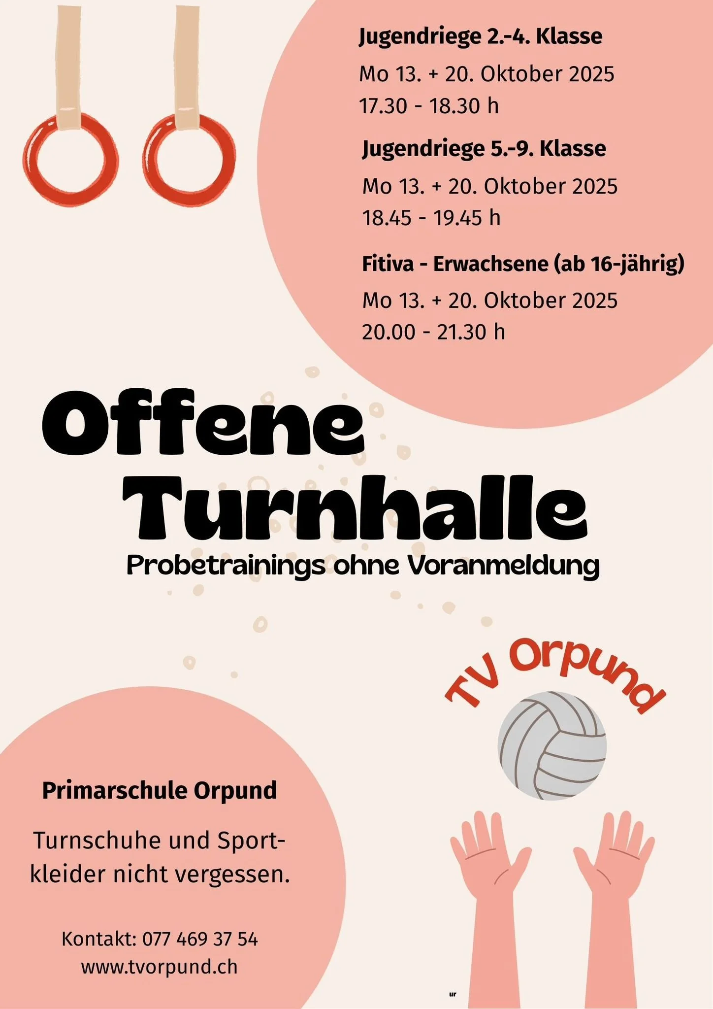 Zwischen dem 13. und 28.10.25 kannst du unsere Sportangebote kostenlos, unverbindlich und ohne Voranmeldung ausprobieren. Komm vorbei!